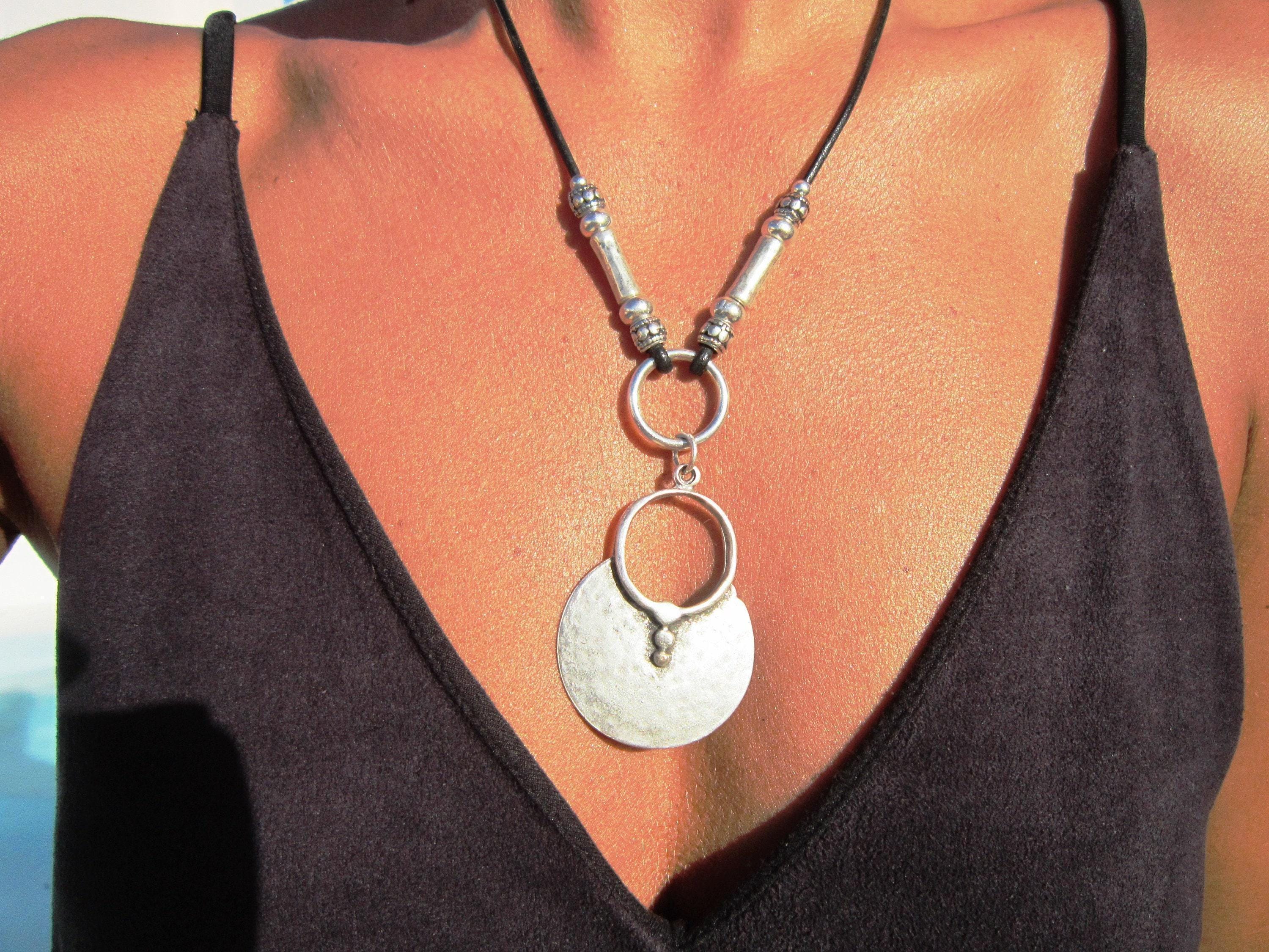 ♥ This Statement leather and silver beaded pendant necklace is part of our best selling items, a perfect blend of timeless style handmade jewelry. Silver necklaces for women made to size to match your style. Designed as a delicate charm necklace, a layered pendant necklace or a bold Couples necklace, it’s available in multiple lengths to match your style. at KEKUGI you can find pendant necklaces, beaded necklaces, charm necklaces, choker necklaces, multi-strand layered necklaces and lariat & Y necklaces, unique bohemian jewelry Best selling items designs.