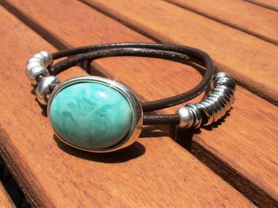To preserve the look of your leather and silver jewelry, avoid water, cosmetics, and cleaning products. Always store your jewelryin a dry place and use a soft cloth to clean silver parts. Leather may naturally darken slightly over time, giving your jewelry a unique, lived-in feel.
