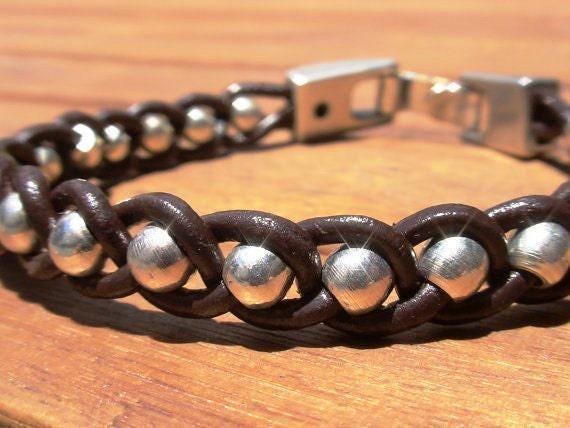 Leather & Silver Charm Beaded Bracelet • Handmade Jewelry Gift for Her • Custom Bracelet Gift • Personalized Jewelry Gifts by Kekugi