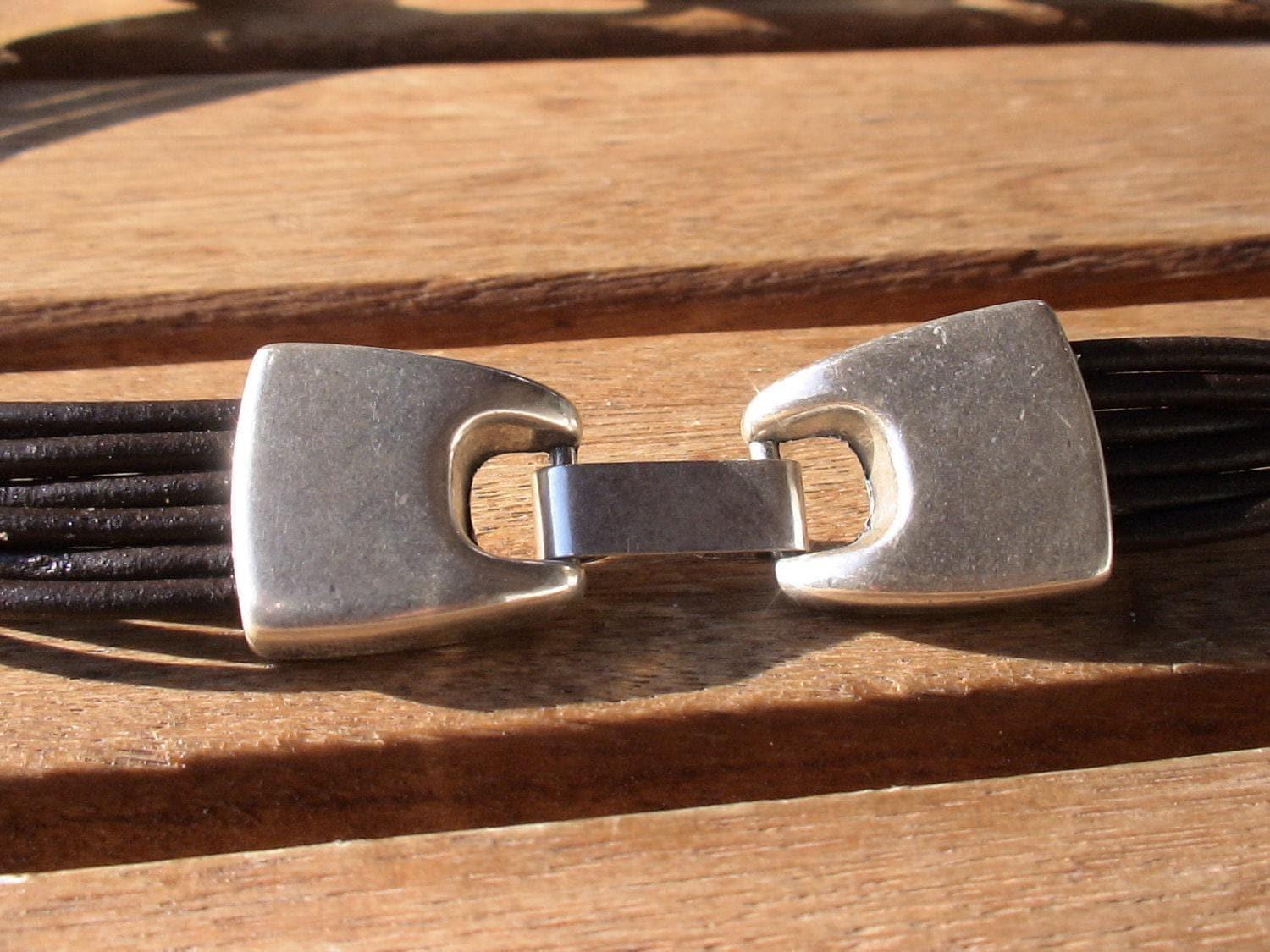 To preserve the look of your leather and silver jewelry, avoid water, cosmetics, and cleaning products. Always store your jewelryin a dry place and use a soft cloth to clean silver parts. Leather may naturally darken slightly over time, giving your jewelry a unique, lived-in feel.