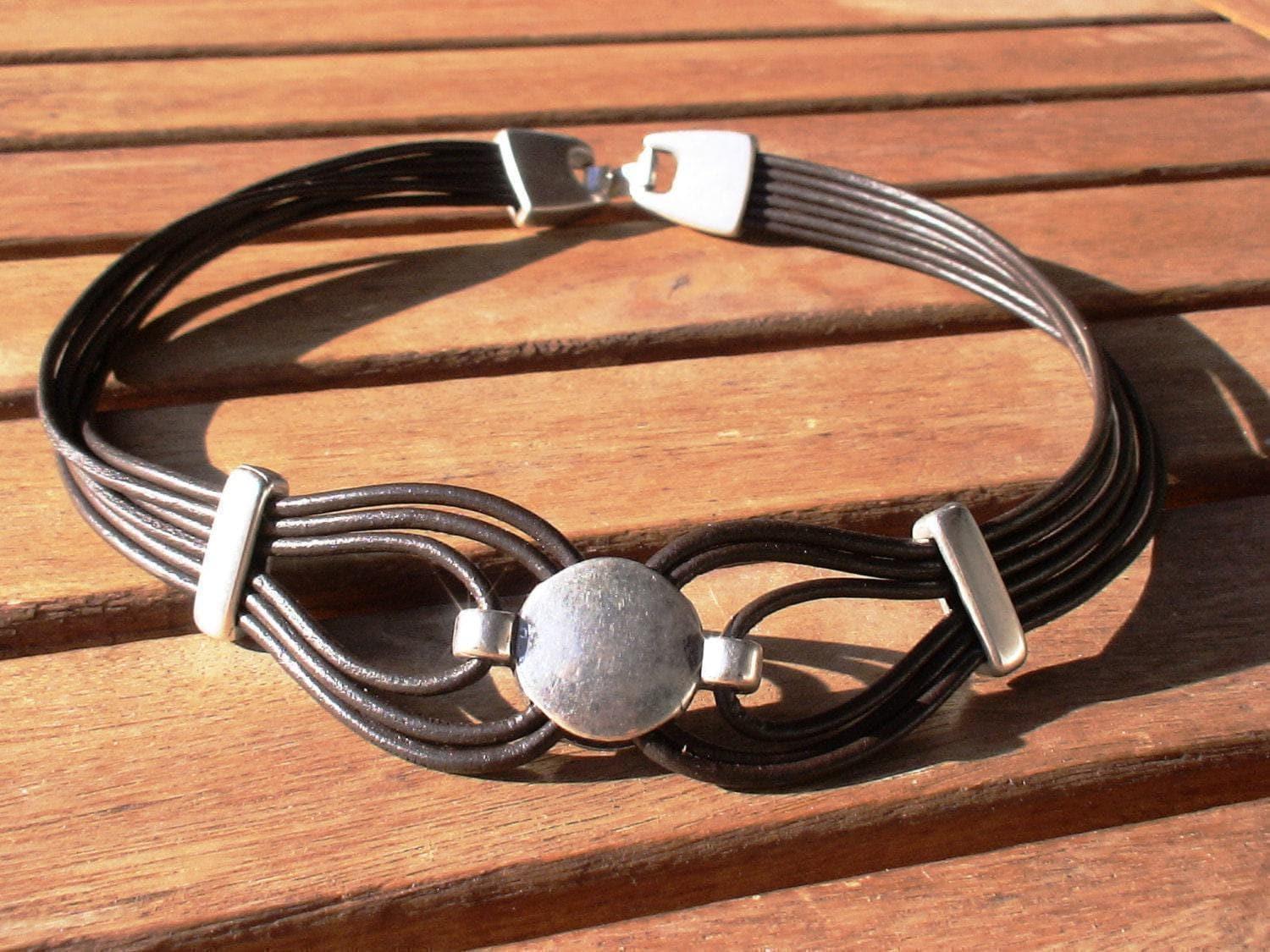 To preserve the look of your leather and silver jewelry, avoid water, cosmetics, and cleaning products. Always store your jewelryin a dry place and use a soft cloth to clean silver parts. Leather may naturally darken slightly over time, giving your jewelry a unique, lived-in feel.
