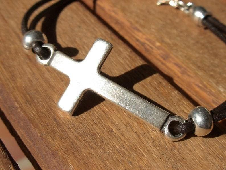 Leather & Silver Mens Cross Bracelet • Matching Couple Bracelets • Custom mens bracelet Gift for him • Best Selling Items jewelry by Kekugi
