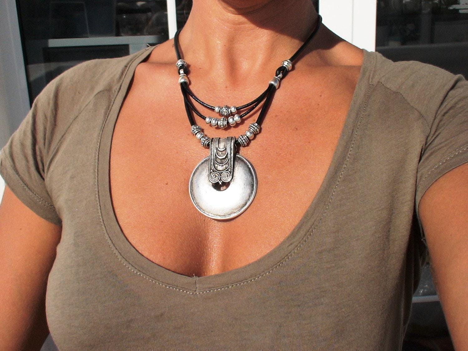 ♥ Elevate your style with these Chunky Statement Pendant Necklace, Silver Beaded and Leather Charm necklace layered in a bold statement piece for everyday style. Part of our best selling items is a perfect blend of timeless style handmade neotribal jewelry. Silver necklaces for women made to size to match your style. Designed as a delicate simple charm necklace, a layered pendant necklace, or a bold statement necklace, it’s available in multiple lengths. at KEKUGI you can find pendant necklaces, beaded necklaces, charm necklaces, choker necklaces, multi-strand necklaces and lariat & Y necklaces, Unique Bohemian jewelry top sellers designs.