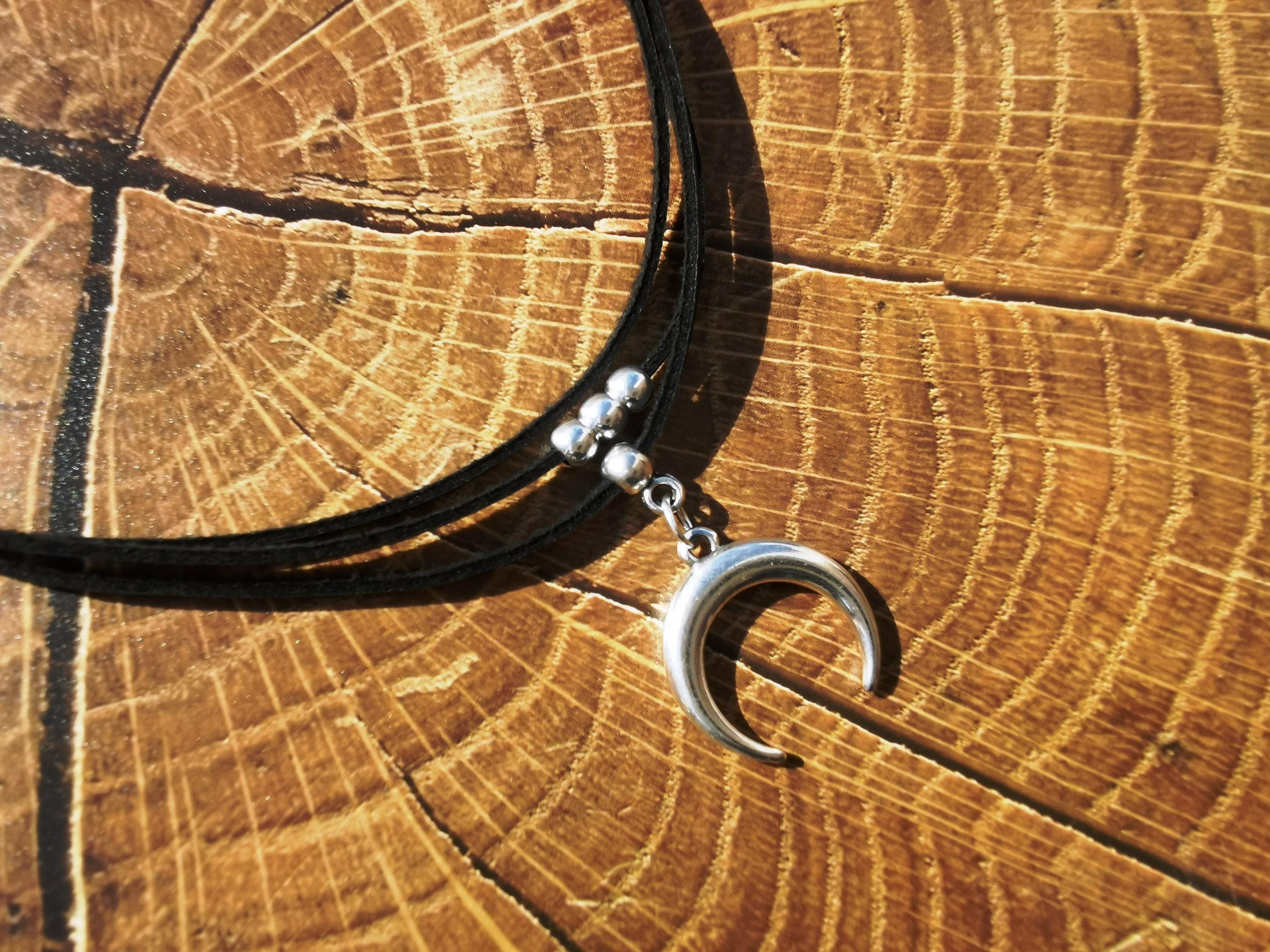 Bohemian Leather Choker Necklace beaded with crescent moon charm • silver necklaces for women, Handmade personalized jewelry gift for her