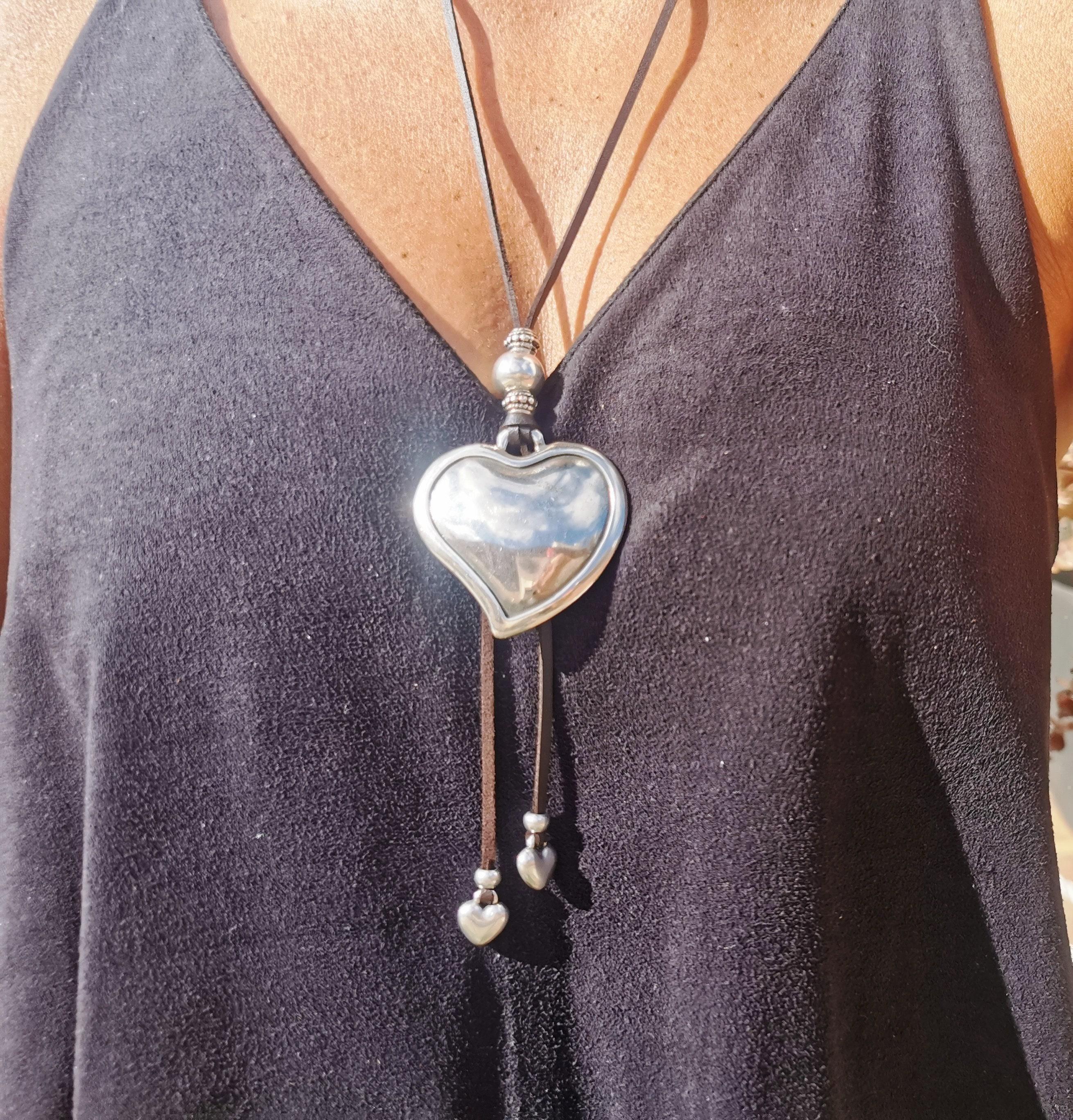 ♥ Elevate your style with this Chunky Statement Pendant Necklaces, a Silver beaded Heart necklace on leather, a bold statement piece for everyday style.It is part of our best selling items, a perfect blend of timeless style handmade jewelry. Silver Chunky charm necklace for couples, necklaces for women made to size to match your style. Designed as a delicate charm necklace, a layered pendant necklace, it’s available in multiple lengths to match your style. at KEKUGI you can find pendant necklaces, beaded necklaces, charm necklaces, choker necklaces, multi-strand layered necklaces and lariat & Y necklaces, unique bohemian jewelry Best selling items designs gift for Her, birthday gift or personalized gifts.
