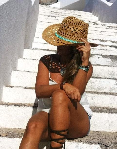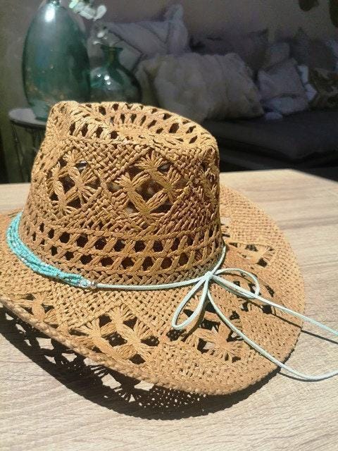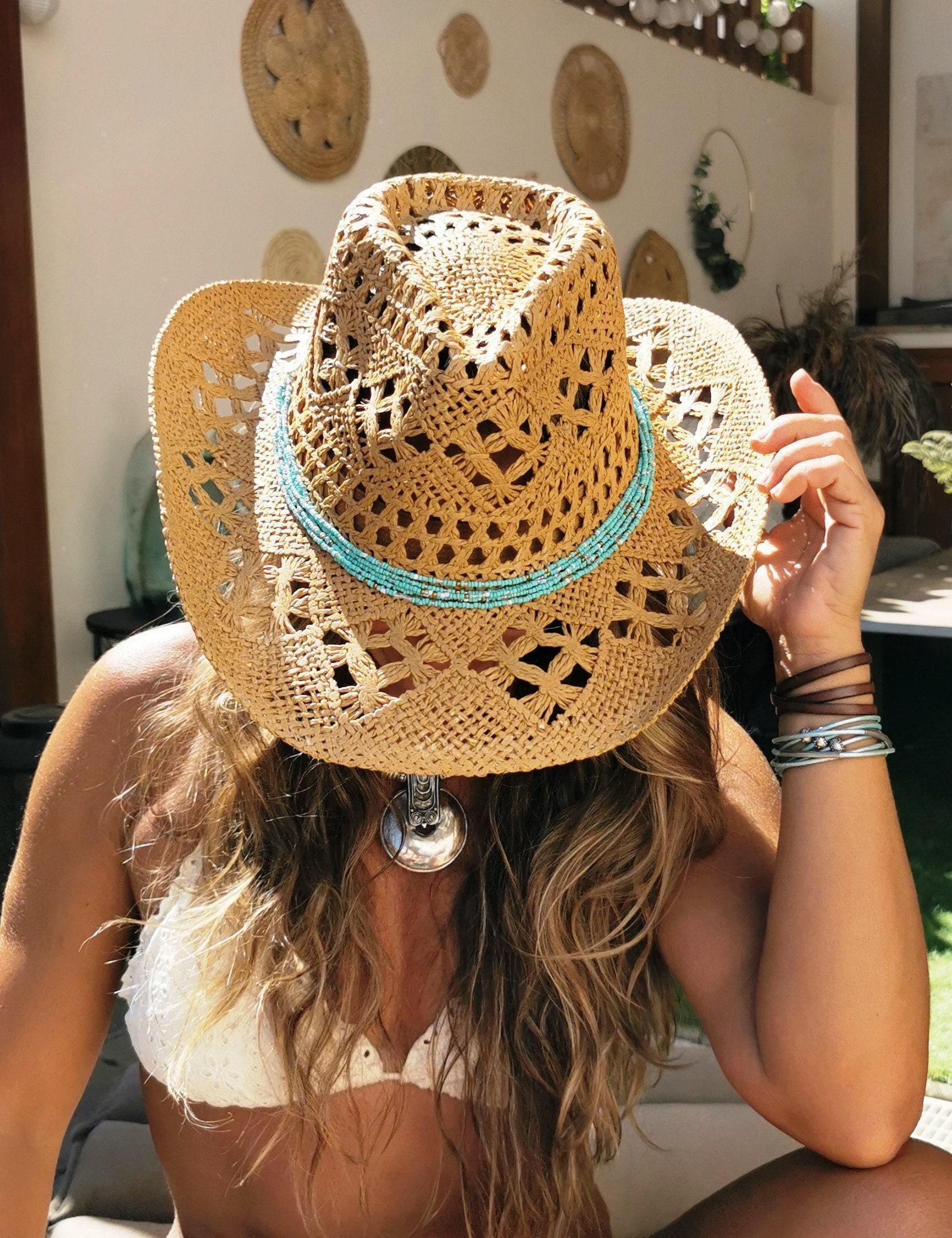 ♥This custom cowboy hat is the perfect straw hat for women who love western summer style. A stylish handmade summer hat and ideal gift for festivals or beach days.