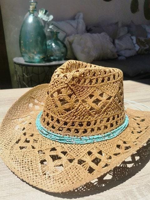 ♥ Handmade cowboy straw hat for summer outfits , vacation or holidays, elevate your style with this bohemian style hat custom made for Bride or Bachelorette party hat, or Music festivals. Unique custom hat perfect for birthday gifts, custom personalized gifts, and accessories gift. best selling items byKekugi bohemian Jewelry.
