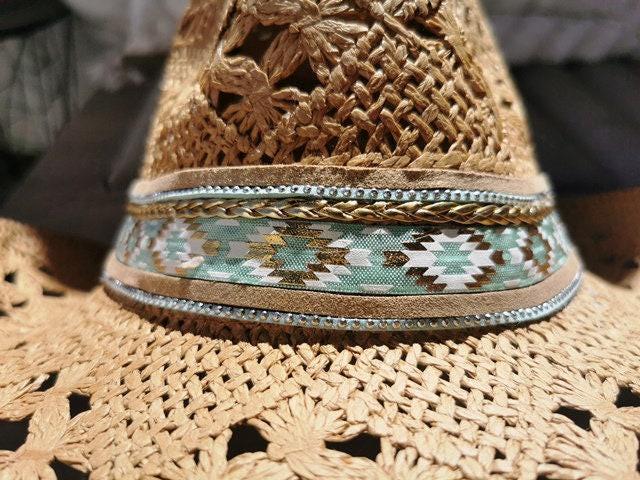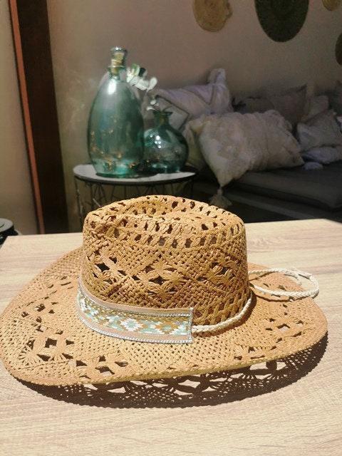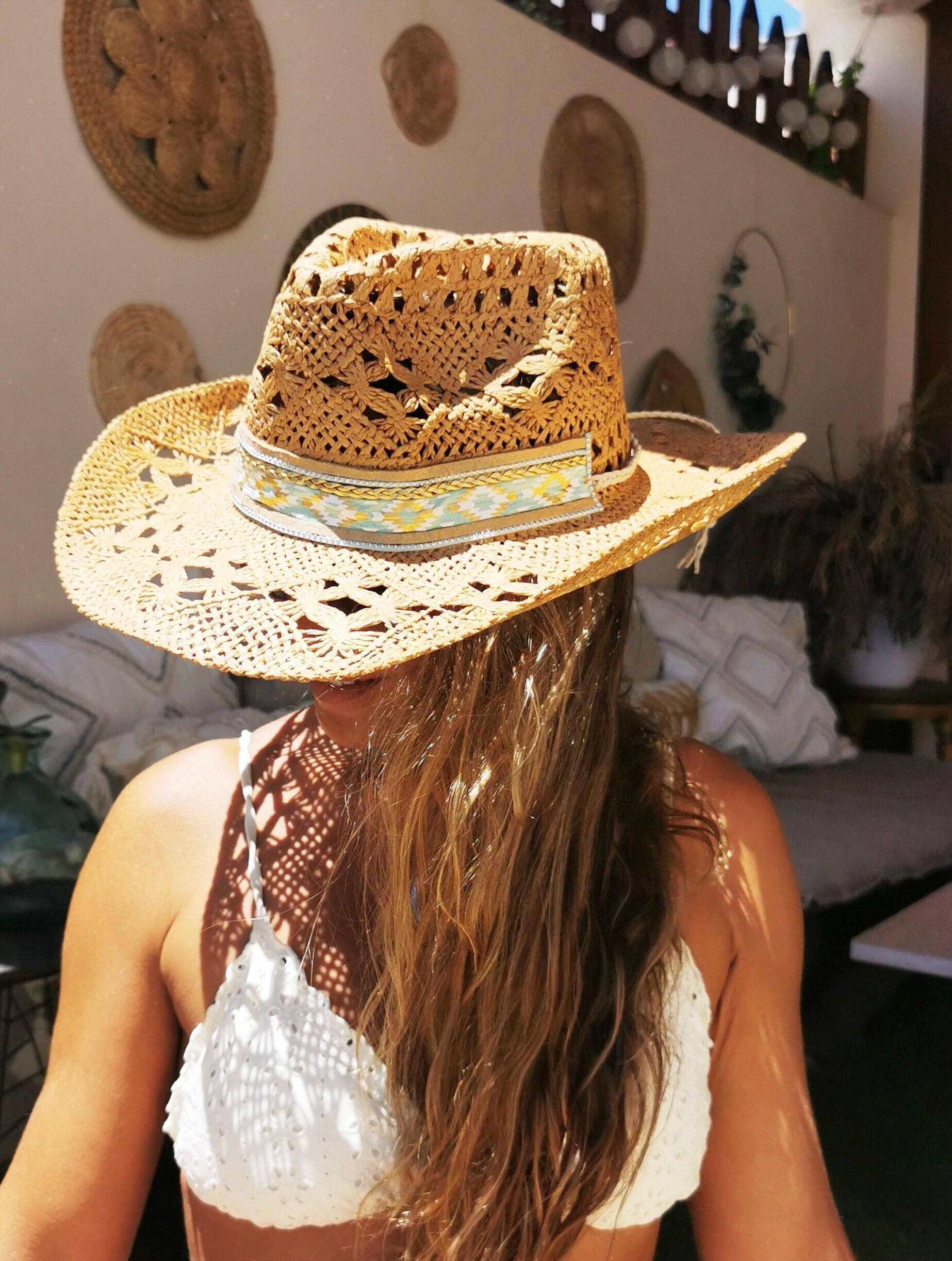 ♥This custom cowboy hat is the perfect straw hat for women who love western summer style. A stylish handmade summer hat and ideal gift for festivals or beach days.