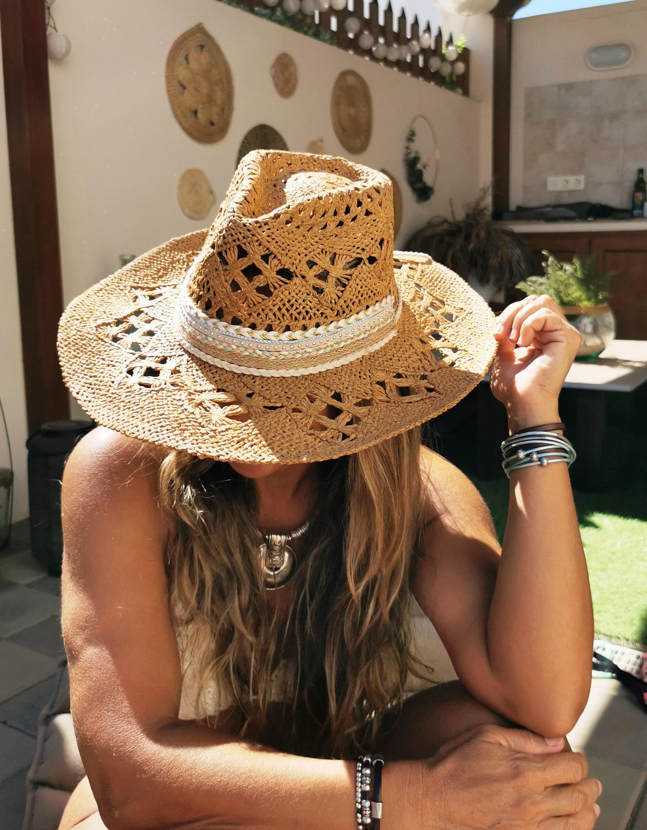 ♥This custom cowboy hat is the perfect straw hat for women who love western summer style. A stylish handmade summer hat and ideal gift for festivals or beach days.