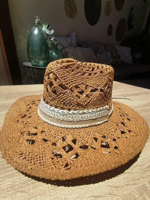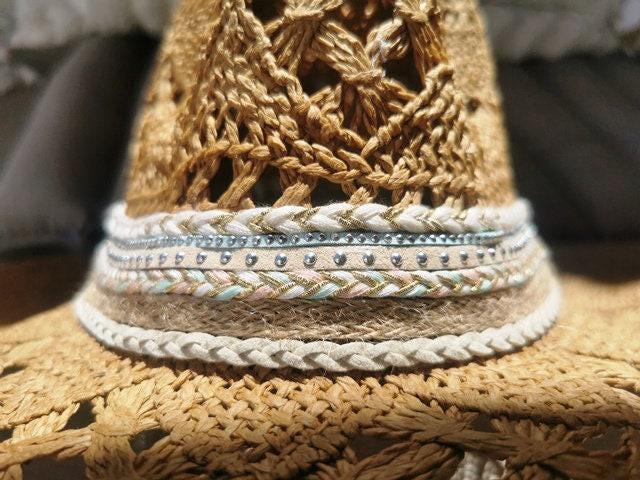 ♥ Handmade cowboy straw hat for summer outfits , vacation or holidays, elevate your style with this bohemian style hat custom made for Bride or Bachelorette party hat, or Music festivals. Unique custom hat perfect for birthday gifts, custom personalized gifts, and accessories gift. best selling items byKekugi bohemian Jewelry.