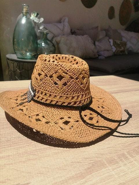 ♥This custom cowboy hat is the perfect straw hat for women who love western summer style. A stylish handmade summer hat and ideal gift for festivals or beach days.