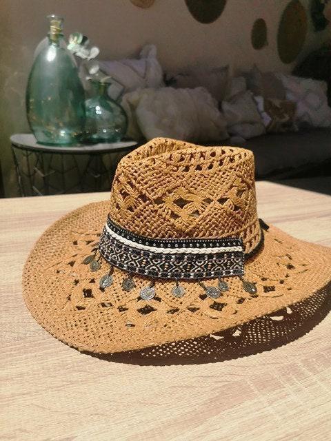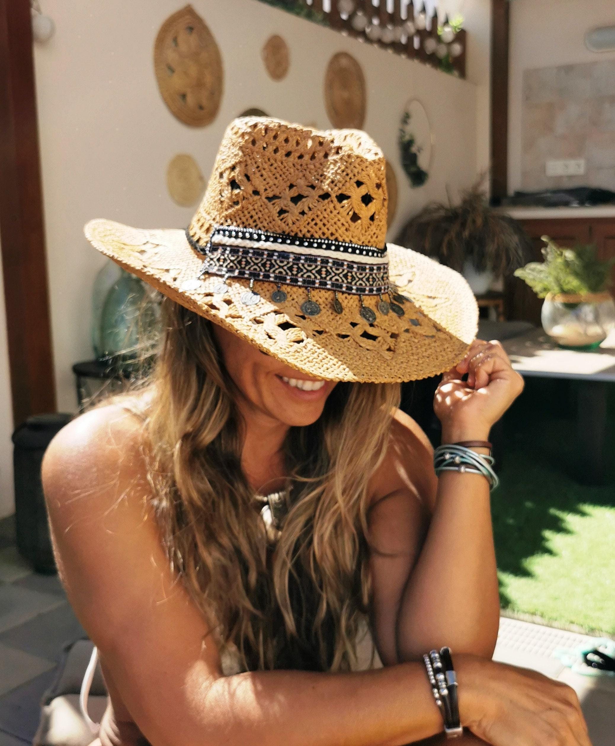 ♥ Handmade cowboy straw hat for summer outfits , vacation or holidays, elevate your style with this bohemian style hat custom made for Bride or Bachelorette party hat, or Music festivals. Unique custom hat perfect for birthday gifts, custom personalized gifts, and accessories gift. best selling items byKekugi bohemian Jewelry.