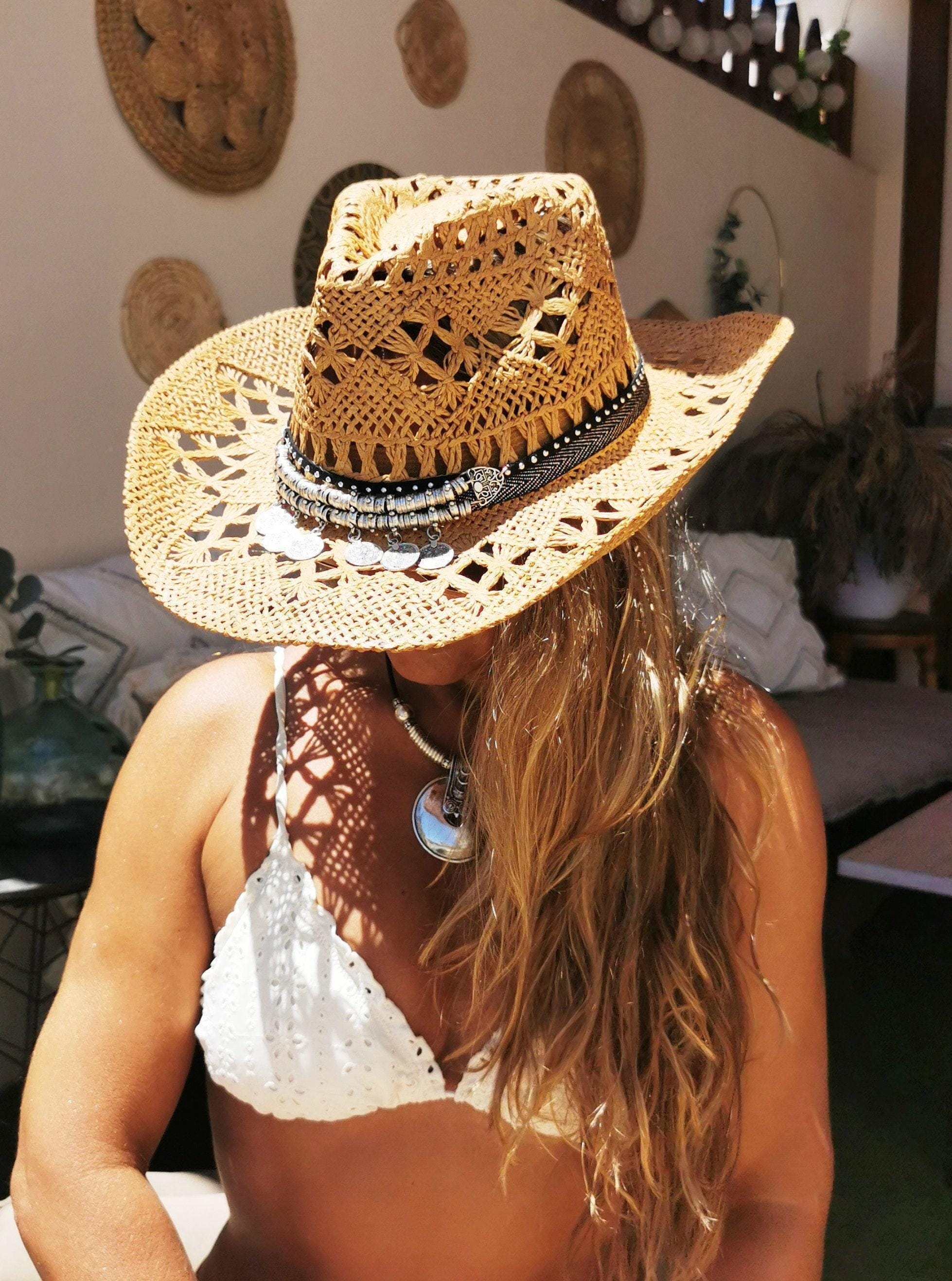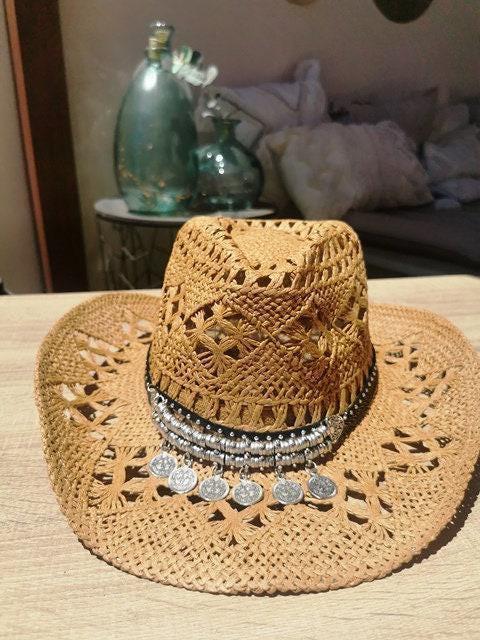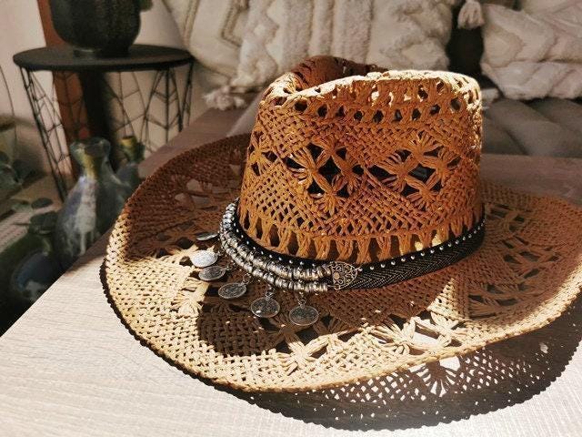♥ Handmade cowboy straw hat for summer outfits , vacation or holidays, elevate your style with this bohemian style hat custom made for Bride or Bachelorette party hat, or Music festivals. Unique custom hat perfect for birthday gifts, custom personalized gifts, and accessories gift. best selling items byKekugi bohemian Jewelry.