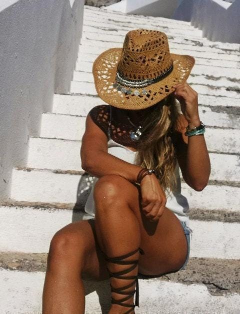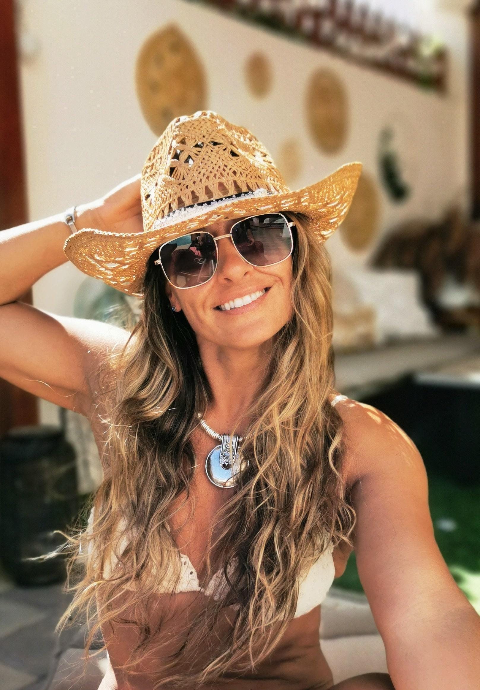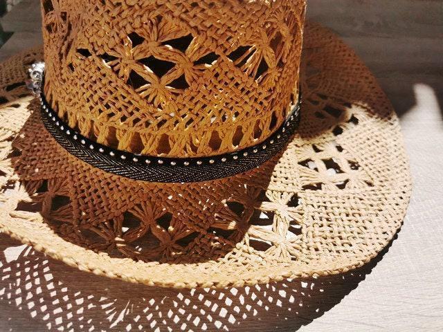 ♥This custom cowboy hat is the perfect straw hat for women who love western summer style. A stylish handmade summer hat and ideal gift for festivals or beach days.