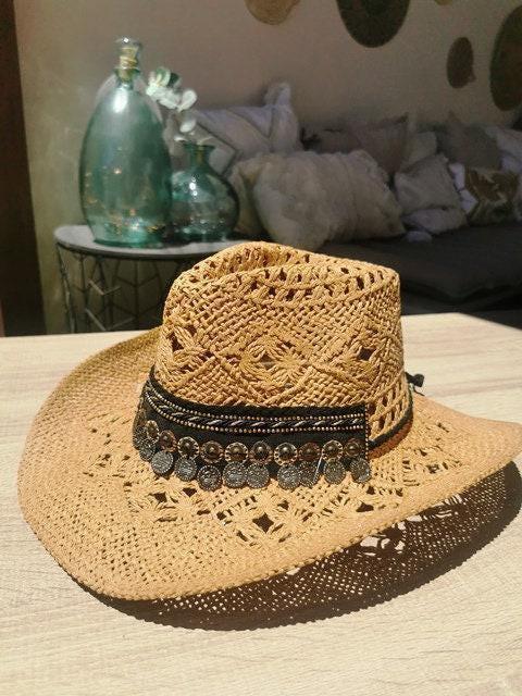 ♥ Handmade cowboy straw hat for summer outfits , vacation or holidays, elevate your style with this bohemian style hat custom made for Bride or Bachelorette party hat, or Music festivals. Unique custom hat perfect for birthday gifts, custom personalized gifts, and accessories gift. best selling items byKekugi bohemian Jewelry.