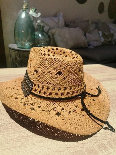 ♥This custom cowboy hat is the perfect straw hat for women who love western summer style. A stylish handmade summer hat and ideal gift for festivals or beach days.