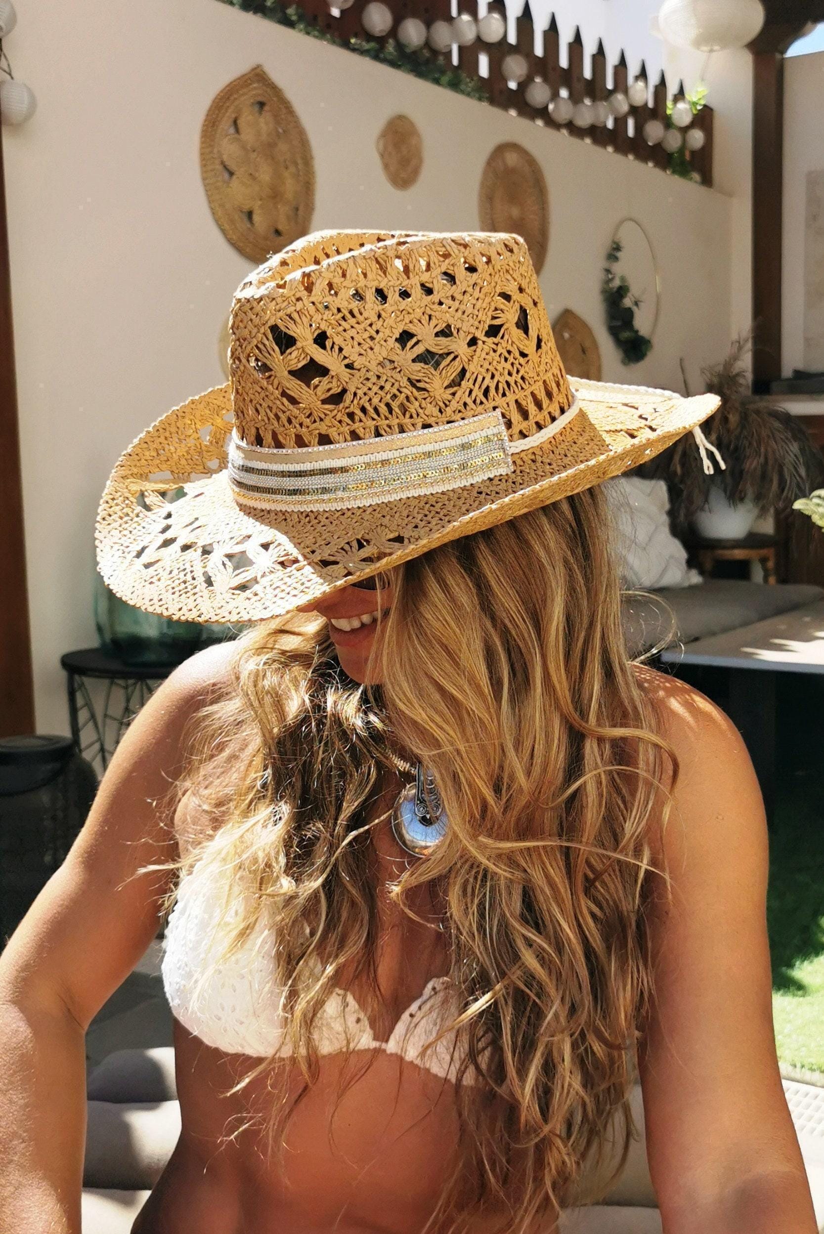 ♥This custom cowboy hat is the perfect straw hat for women who love western summer style. A stylish handmade summer hat and ideal gift for festivals or beach days.