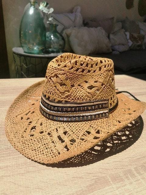 ♥This custom cowboy hat is the perfect straw hat for women who love western summer style. A stylish handmade summer hat and ideal gift for festivals or beach days.