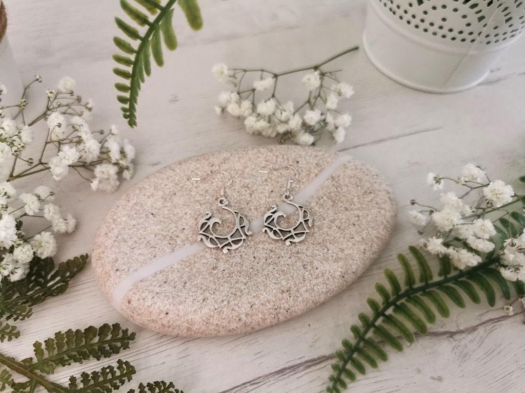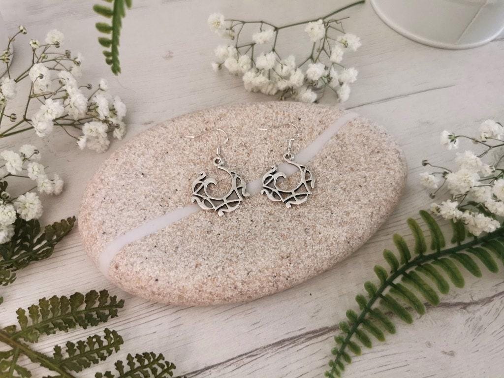These earrings are made with sterling silver ear hooks and handcrafted silver plated charm pendants. Designed to be lightweight and skin-safe, each pair is made with attention to detail and artisan flair. Nickel-lead free and hipoallergenic, perfect for everyday use or special occasions.