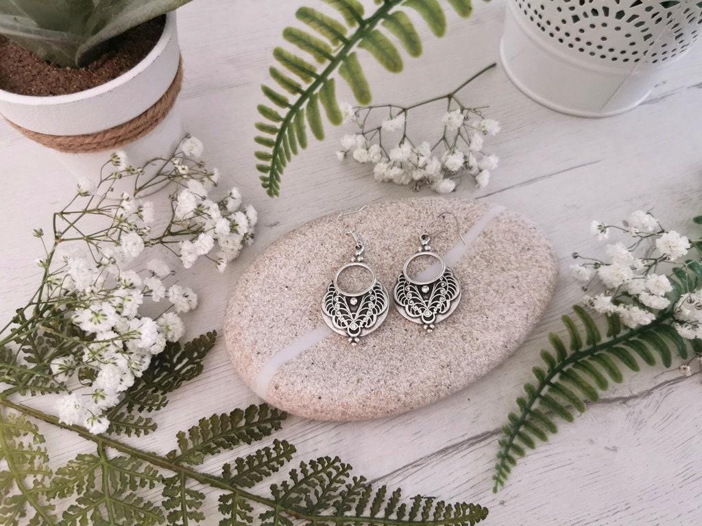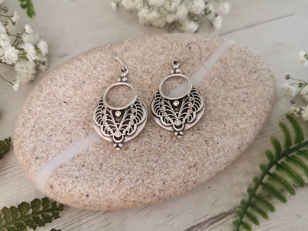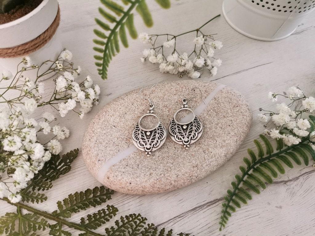 These bohemian silver earrings are a beautiful pair of drop earrings with a beaded, dainty finish — the perfect boho earrings for everyday wear. Designed as lightweight statement earrings, they combine the charm of cute earrings with the uniqueness of handmade jewelry. A meaningful gift for her, ideal for those who love personalized jewelry and unique earrings.