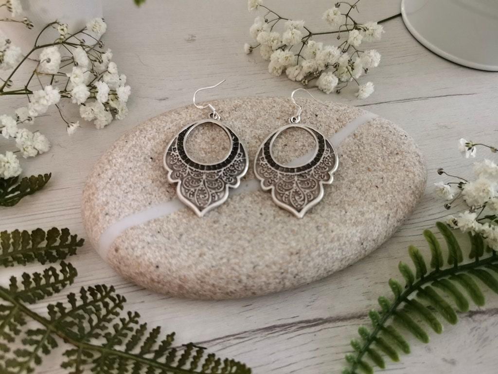 These earrings are made with sterling silver ear hooks and handcrafted silver plated charm pendants. Designed to be lightweight and skin-safe, each pair is made with attention to detail and artisan flair. Nickel-lead free and hipoallergenic, perfect for everyday use or special occasions.
