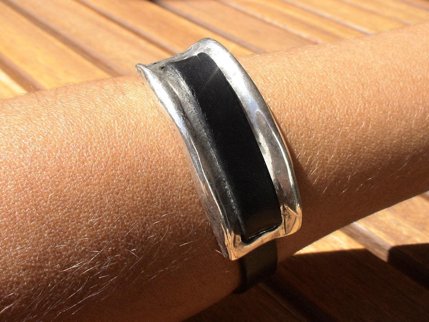 To preserve the look of your leather and silver jewelry, avoid water, cosmetics, and cleaning products. Always store your jewelryin a dry place and use a soft cloth to clean silver parts. Leather may naturally darken slightly over time, giving your jewelry a unique, lived-in feel.