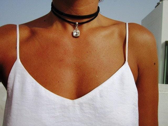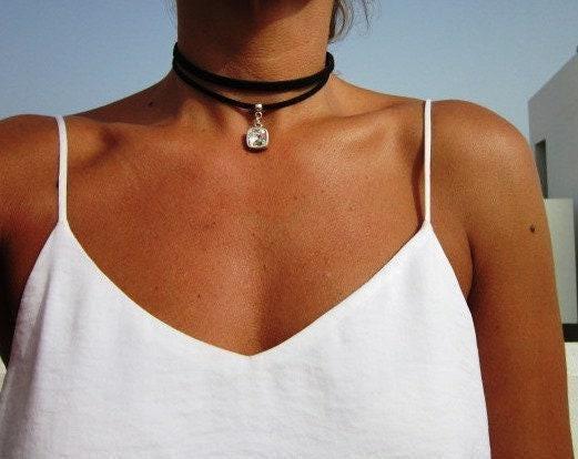 Silver necklaces for women made to size to match your style. Designed as a delicate charm leather and silver choker necklace eternity collar.
