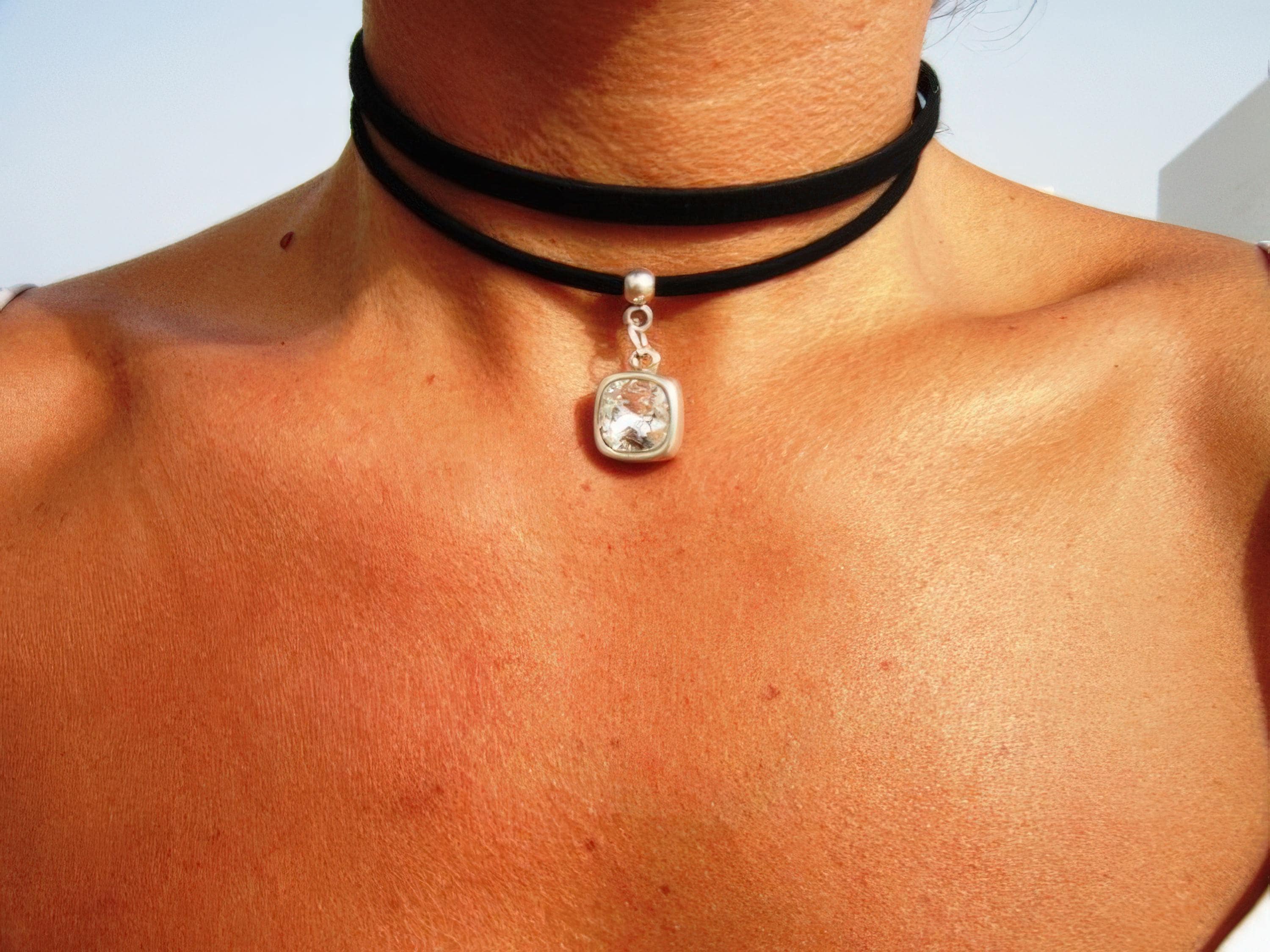 Silver necklaces for women made to size to match your style. Designed as a delicate charm leather and silver choker necklace eternity collar.