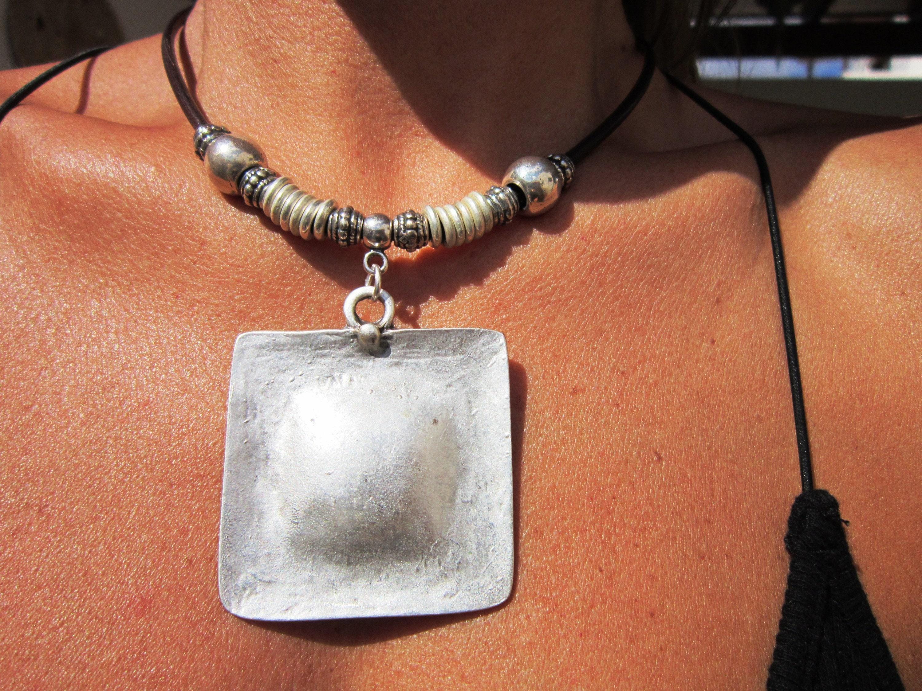♥ This Statement leather and silver beaded pendant necklace is part of our best selling items, a perfect blend of timeless style handmade jewelry. Silver necklaces for women made to size to match your style. Designed as a delicate charm necklace, a layered pendant necklace or a bold Couples necklace, it’s available in multiple lengths to match your style. at KEKUGI you can find pendant necklaces, beaded necklaces, charm necklaces, choker necklaces, multi-strand layered necklaces and lariat & Y necklaces, unique bohemian jewelry Best selling items designs.