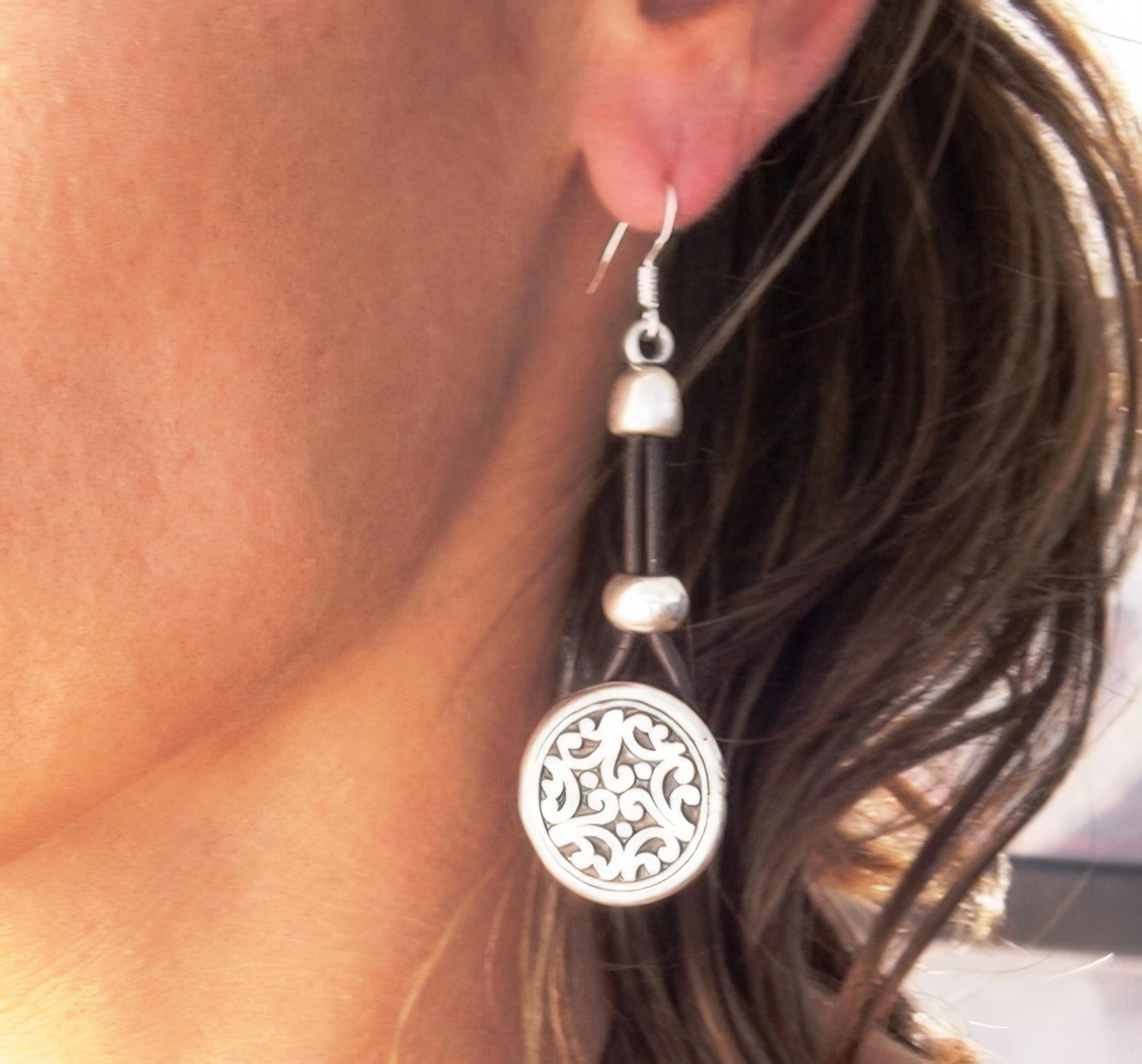 These earrings are made with sterling silver ear hooks and handcrafted silver plated charm pendants. Designed to be lightweight and skin-safe, each pair is made with attention to detail and artisan flair. Nickel-lead free and hipoallergenic, perfect for everyday use or special occasions.