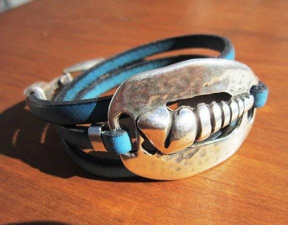 To preserve the look of your leather and silver jewelry, avoid water, cosmetics, and cleaning products. Always store your jewelryin a dry place and use a soft cloth to clean silver parts. Leather may naturally darken slightly over time, giving your jewelry a unique, lived-in feel.