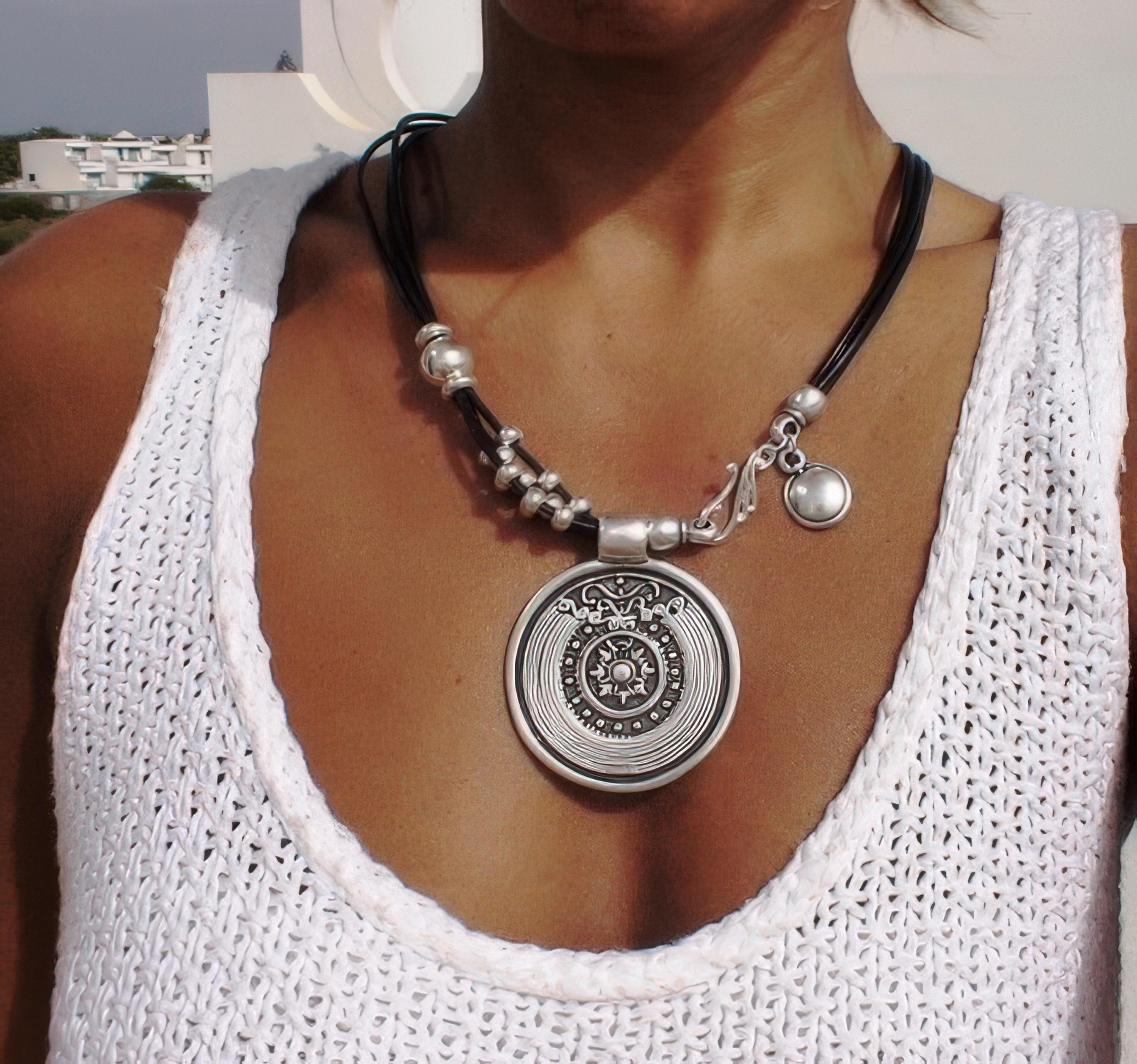 To preserve the look of your leather and silver jewelry, avoid water, cosmetics, and cleaning products. Always store your jewelryin a dry place and use a soft cloth to clean silver parts. Leather may naturally darken slightly over time, giving your jewelry a unique, lived-in feel.