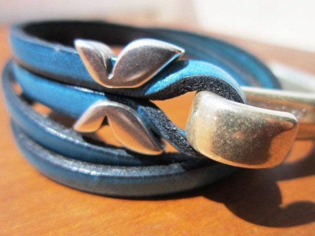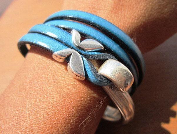 Leather & Silver Beaded blue dragonfly Bracelet • Handmade Jewelry Gift for Her • Custom Bracelet Gift • Personalized Jewelry Gifts