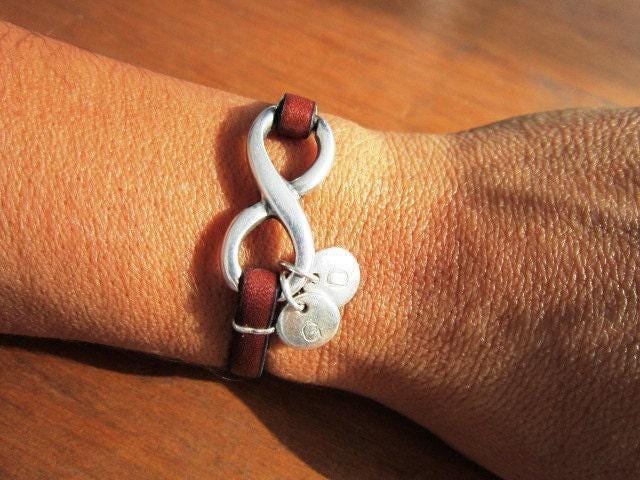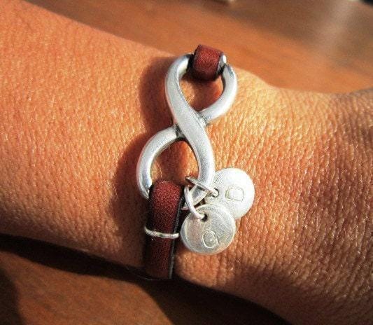 Personalized Leather & Silver Beaded initial Bracelet Gifts • Handmade Bohemian Jewelry • Birthday Gift or Custom Jewelry Gift for Her