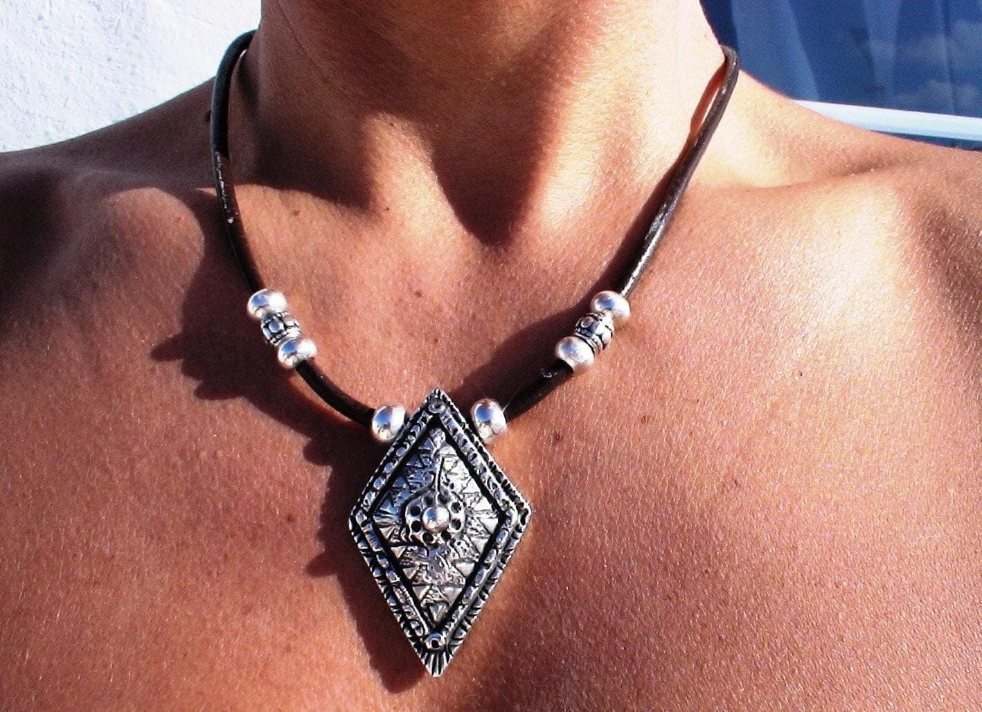 ♥ This Statement leather and silver beaded pendant necklace is part of our best selling items, a perfect blend of timeless style handmade jewelry. Silver necklaces for women made to size to match your style. Designed as a delicate charm necklace, a layered pendant necklace or a bold Couples necklace, it’s available in multiple lengths to match your style. at KEKUGI you can find pendant necklaces, beaded necklaces, charm necklaces, choker necklaces, multi-strand layered necklaces and lariat & Y necklaces, unique bohemian jewelry Best selling items designs.