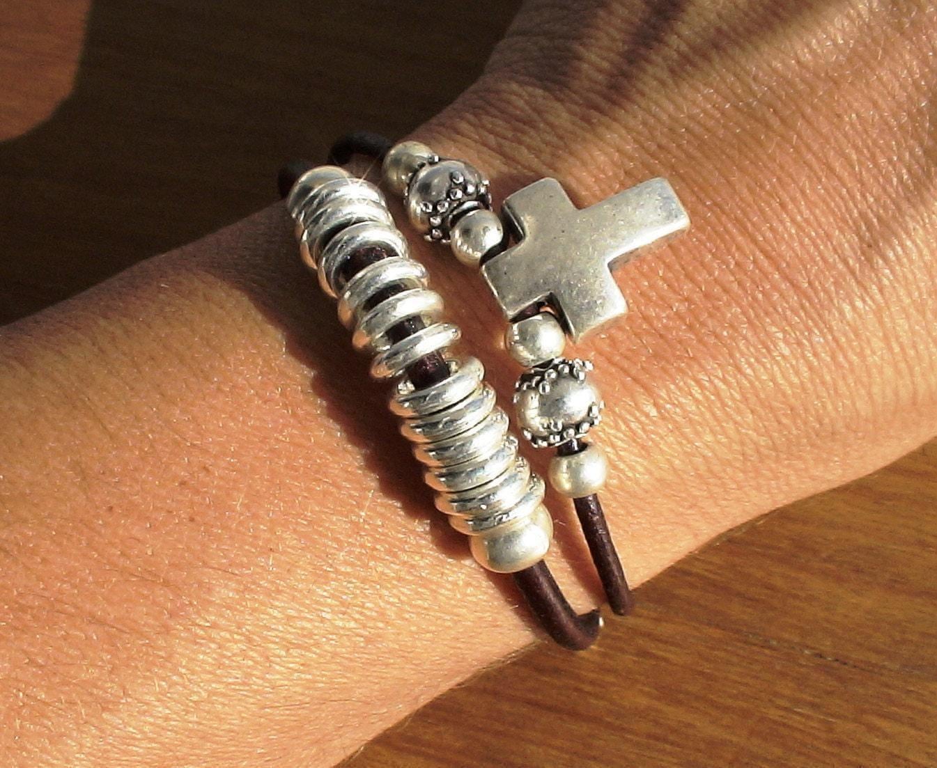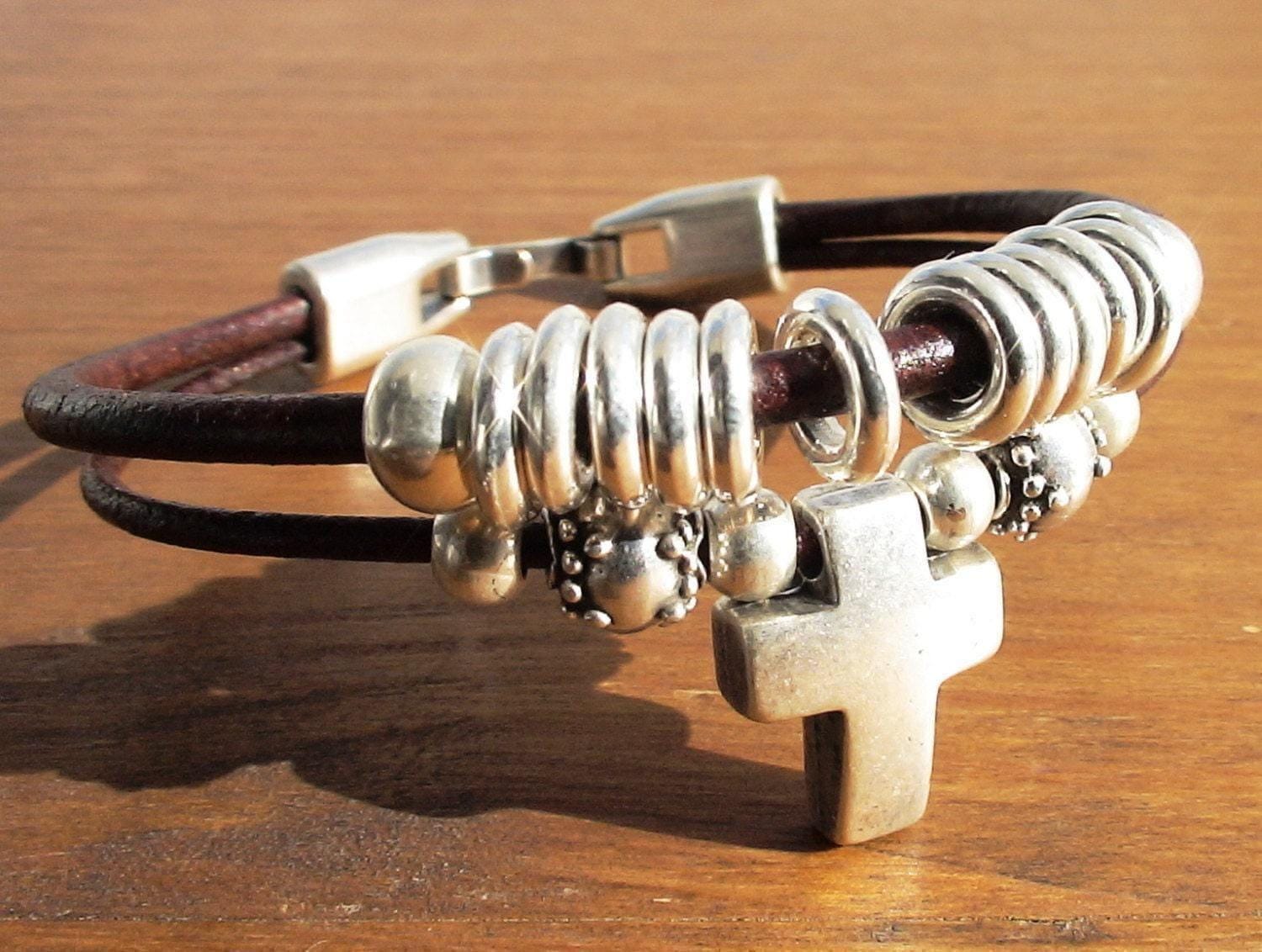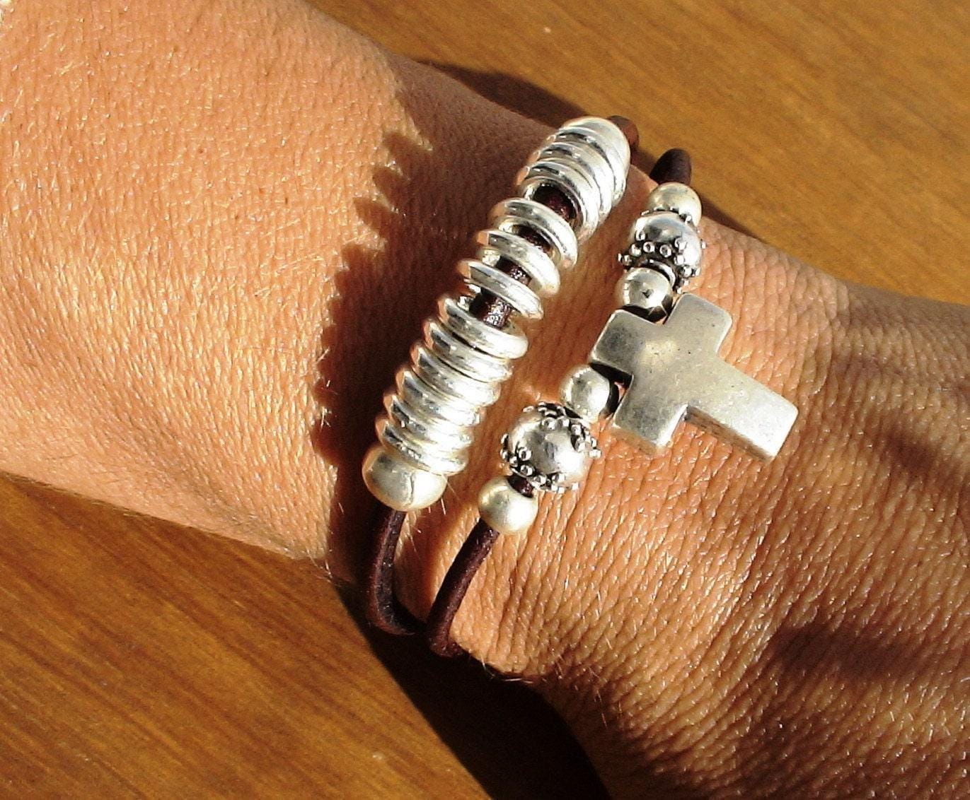♥ Silver bracelet with leather and beaded bracelets finish, handmade jewelry to size, Ideal as a friendship bracelet, charm bracelet, or jewelry gift. A unique piece of personalized jewelry, perfect for a gift for her, gift for mom, birthday gift, personalized gift, or custom gift ♥