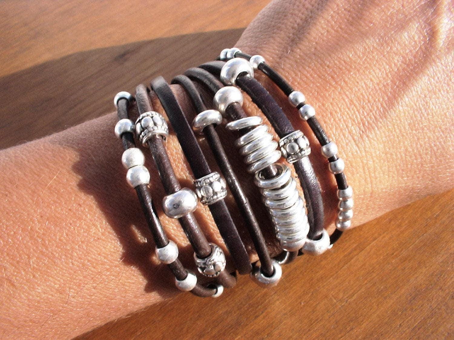Leather & Silver Charm Beaded Bracelet • Handmade Jewelry Gift for Her • Custom Bracelet Gift • Personalized Jewelry Gifts by Kekugi