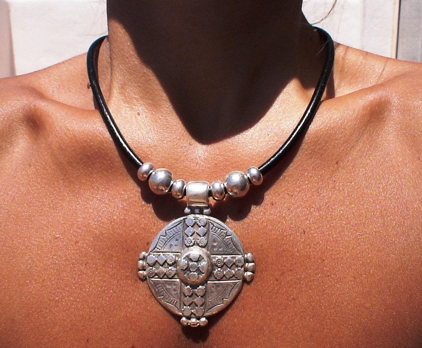 ♥ This Statement chunky leather and silver beaded pendant necklace is part of our best selling items, a perfect blend of timeless style handmade jewelry. Silver necklaces for women made to size to match your style. Designed as a delicate charm necklace, a layered pendant necklace or a bold Couples necklace, it’s available in multiple lengths to match your style. at KEKUGI you can find pendant necklaces, beaded necklaces, charm necklaces, choker necklaces, multi-strand layered necklaces and lariat & Y necklaces, unique bohemian jewelry Best selling items designs.