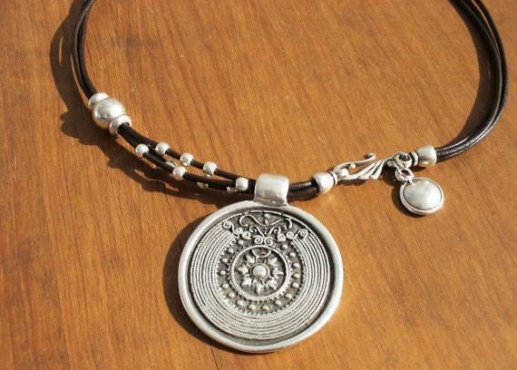 ♥ Elevate your style with these this Statement beaded pendant necklace, a Charm necklace made of silver and leather, a bold statement piece for everyday style. It is part of our best selling items, a perfect blend of timeless style handmade Neotribal jewelry. Designed as a delicate charm couples necklace, a layered pendant necklace, or a bold statement necklace perfect as Couples Necklace it’s available in multiple lengths to match your style. at KEKUGI you can find pendant necklaces, beaded necklaces, charm necklaces, choker necklaces, multi-strand necklaces and lariat & Y necklaces, unique bohemian jewelry Best selling items designs.