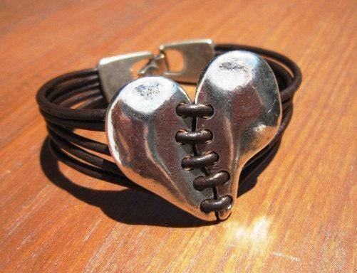 Custom Charm silver beaded Bracelet with heart • Handmade Leather Jewelry gift • Personalized custom Gift for Her personalized jewelry