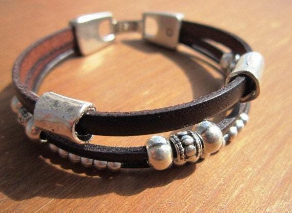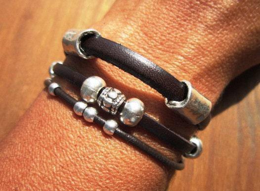 Leather & Silver Charm Beaded Bracelet • Handmade Jewelry Gift for Her • Custom Bracelet gift • Personalized jewelry gifts by kekugi