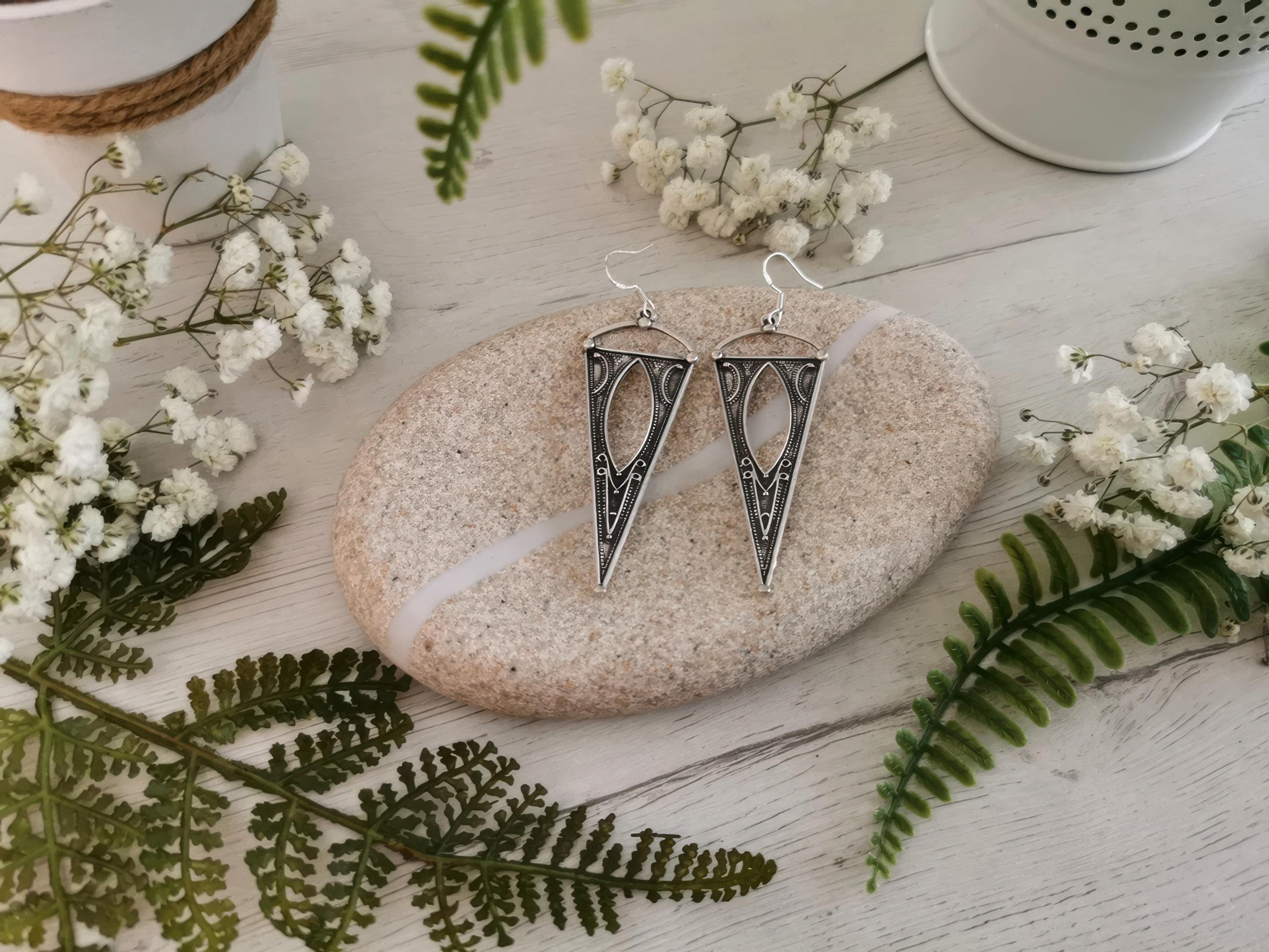 These earrings are made with sterling silver ear hooks and handcrafted silver plated charm pendants. Designed to be lightweight and skin-safe, each pair is made with attention to detail and artisan flair. Nickel-lead free and hipoallergenic, perfect for everyday use or special occasions.