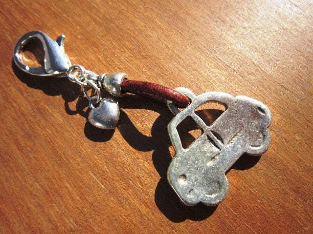 Silver Car Personalized Leather Keychain for Men and Women • Custom Key Holder • Handmade Gift for Her Him