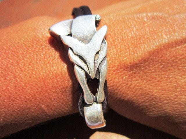 Personalized Leather & Silver Beaded fox Bracelet Gifts • Handmade Bohemian Jewelry • Birthday Gift or Custom Jewelry Gift for Her by Kekugi