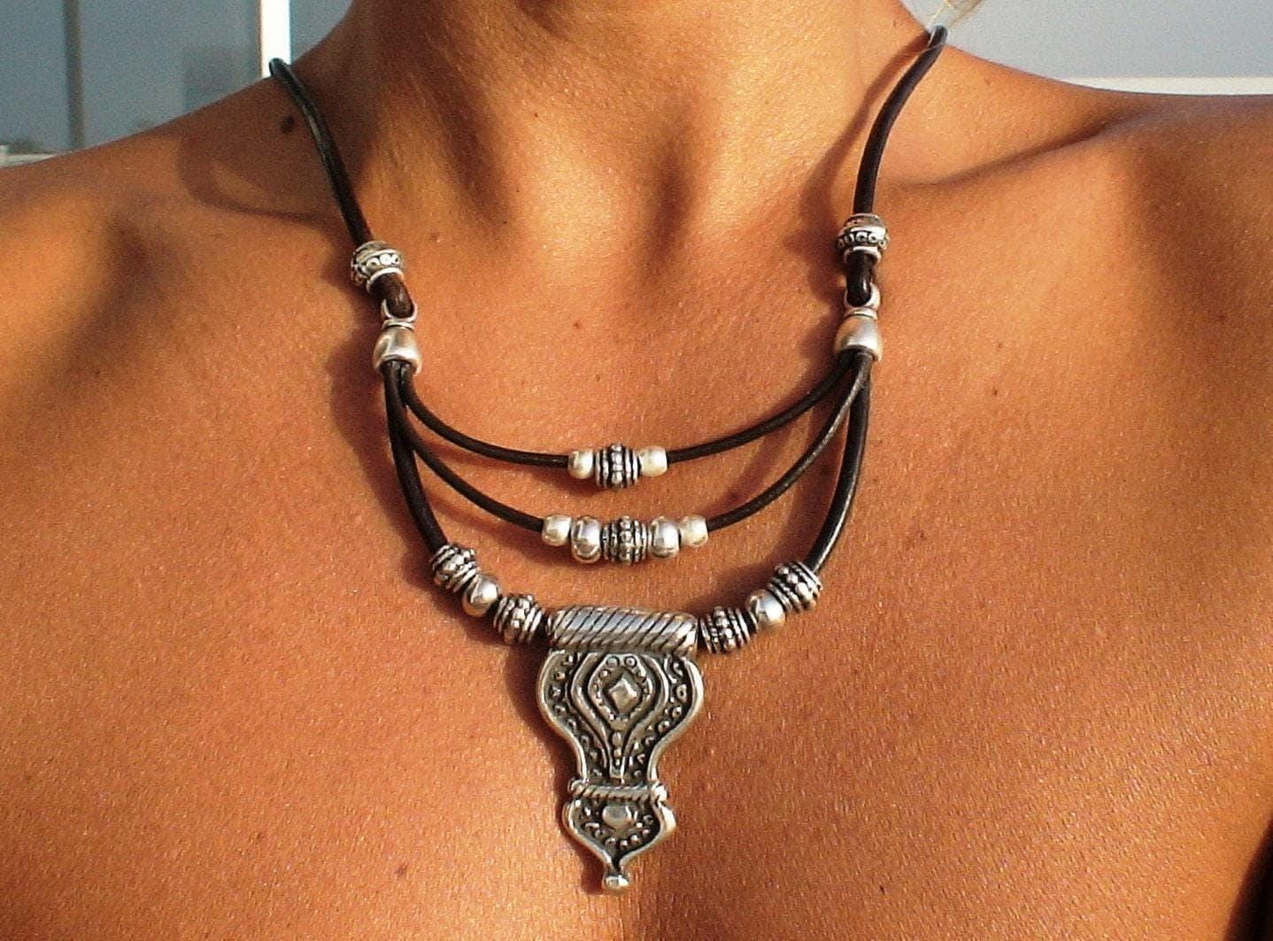 ♥ This layered Statement leather and silver beaded pendant necklace is part of our best selling items, a perfect blend of timeless style handmade jewelry. Silver necklaces for women made to size to match your style. Designed as a delicate charm necklace, a layered pendant necklace or a bold Couples necklace, it’s available in multiple lengths to match your style. at KEKUGI you can find pendant necklaces, beaded necklaces, charm necklaces, choker necklaces, multi-strand layered necklaces and lariat & Y necklaces, unique bohemian jewelry Best selling items designs.