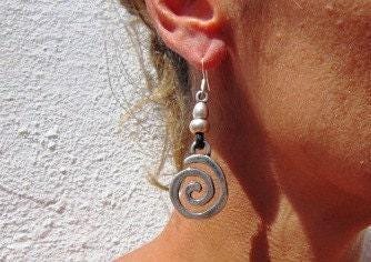 These spiral silver earrings are a beautiful pair of drop earrings with a beaded, dainty finish — the perfect boho earrings for everyday wear. Designed as lightweight statement earrings, they combine the charm of cute earrings with the uniqueness of handmade jewelry. A meaningful gift for her, ideal for those who love personalized jewelry and unique earrings.