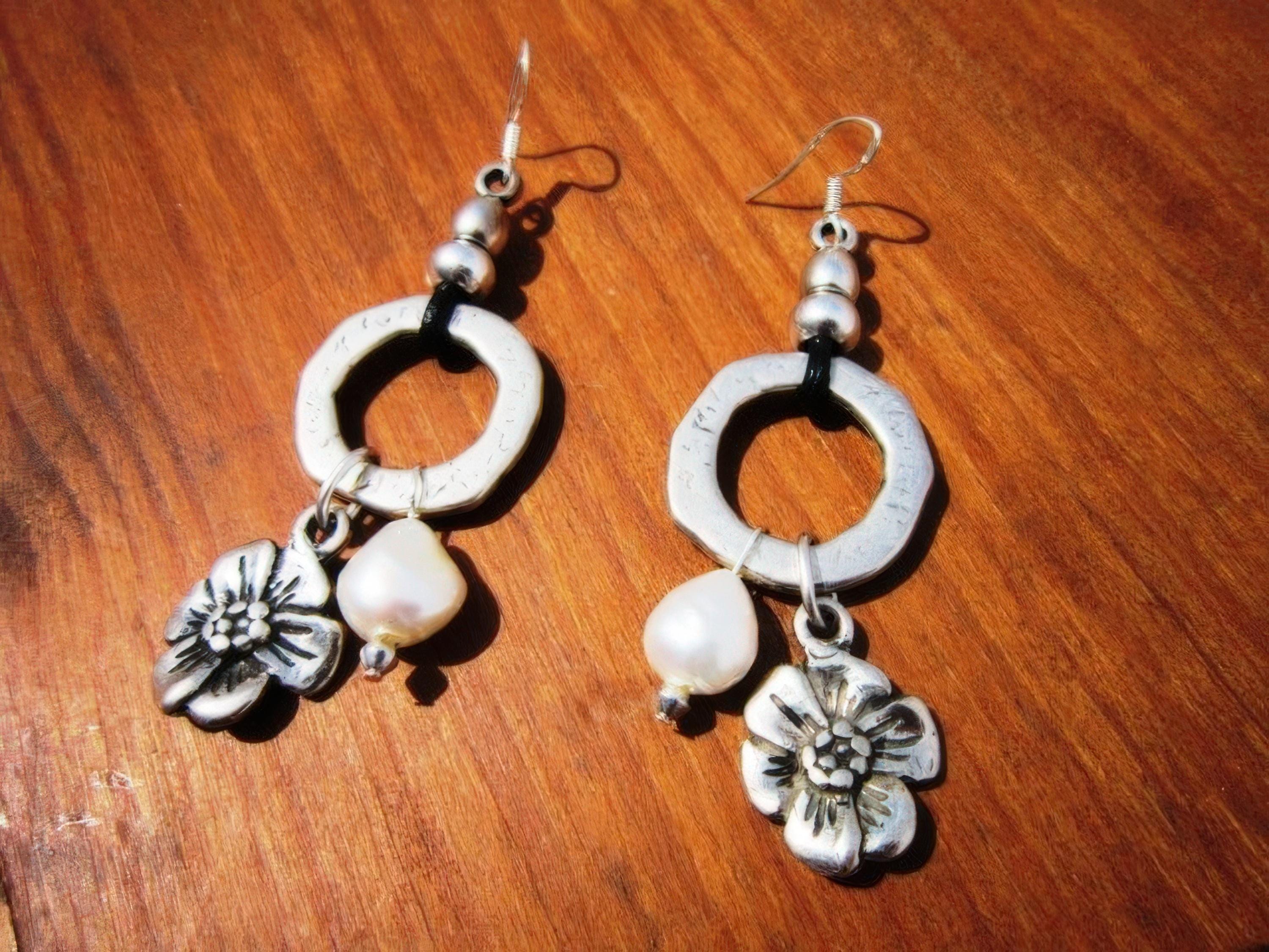 These earrings are made with sterling silver ear hooks and handcrafted silver plated charm pendants. Designed to be lightweight and skin-safe, each pair is made with attention to detail and artisan flair. Nickel-lead free and hipoallergenic, perfect for everyday use or special occasions.