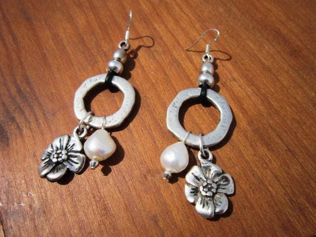 These flower and pearl silver earrings are a beautiful pair of drop earrings with a beaded, dainty finish — the perfect boho earrings for everyday wear. Designed as lightweight statement earrings, they combine the charm of cute earrings with the uniqueness of handmade jewelry. A meaningful gift for her, ideal for those who love personalized jewelry and unique earrings.