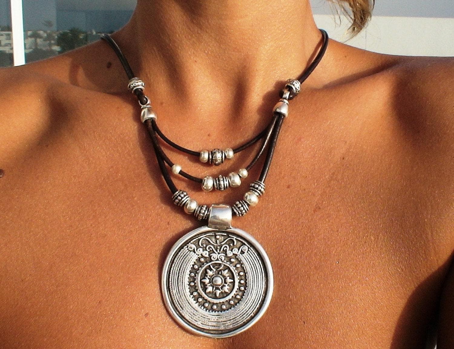 ♥ This Statement layered leather and silver beaded pendant necklace is part of our best selling items, a perfect blend of timeless style handmade jewelry. Silver necklaces for women made to size to match your style. Designed as a delicate charm necklace, a layered pendant necklace or a bold Couples necklace, it’s available in multiple lengths to match your style. at KEKUGI you can find pendant necklaces, beaded necklaces, charm necklaces, choker necklaces, multi-strand layered necklaces and lariat & Y necklaces, unique bohemian jewelry Best selling items designs.