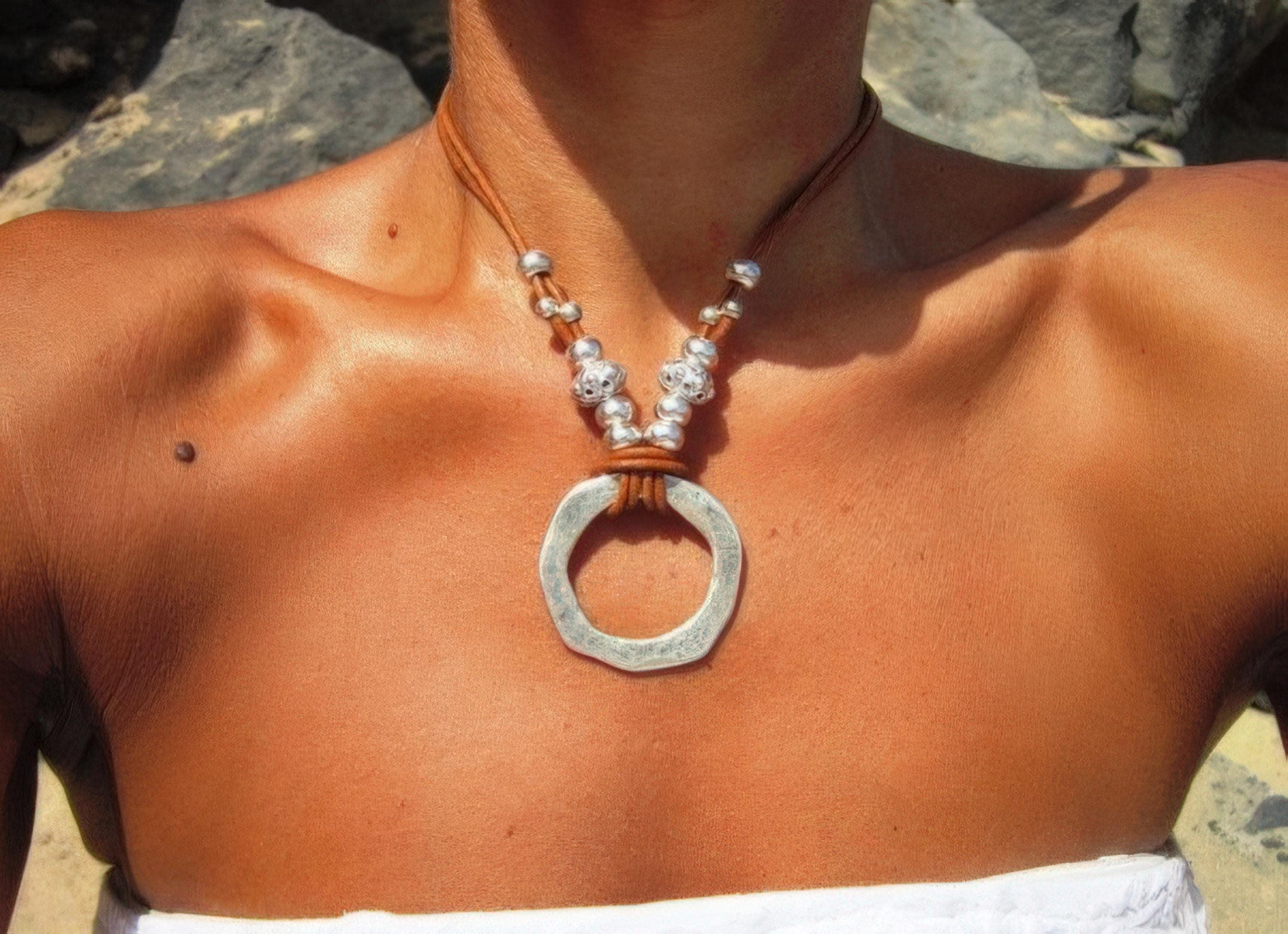 To preserve the look of your leather and silver jewelry, avoid water, cosmetics, and cleaning products. Always store your jewelryin a dry place and use a soft cloth to clean silver parts. Leather may naturally darken slightly over time, giving your jewelry a unique, lived-in feel.